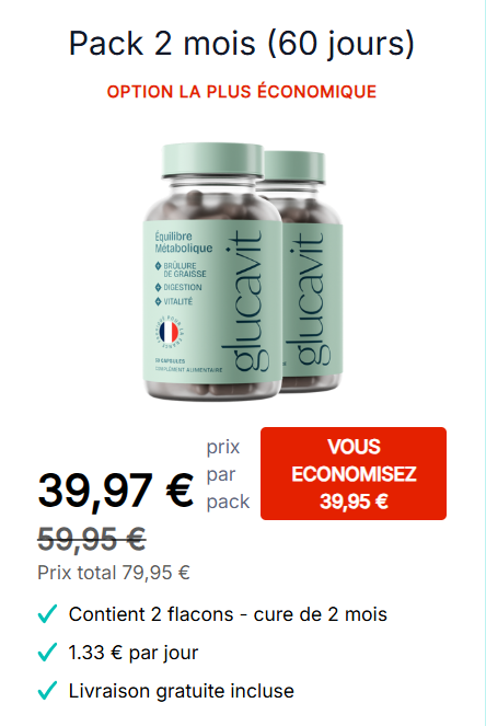 Glucavit est un complément alimentaire naturel sous forme de gélules, spécialement conçu pour aider au contrôle du poids. Ce n’est pas un médicament sur ordonnance ni une solution miracle. Il se présente plutôt comme un accompagnement naturel qui travaille en synergie avec votre corps.