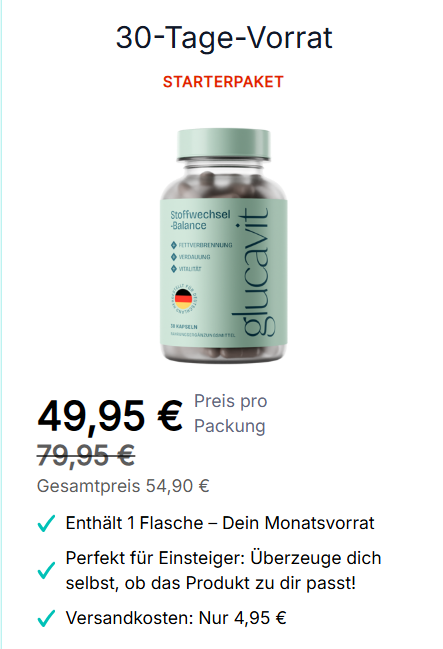 Bei Glucavit handelt es sich um ein natürliches Nahrungsergänzungsmittel in Kapselform, das speziell zur Unterstützung der Gewichtskontrolle entwickelt wurde. Es ist kein verschreibungspflichtiges Medikament und keine Wunderlösung. Stattdessen versteht es sich als natürlicher Begleiter, der in Synergie mit Ihrem Körper arbeitet.